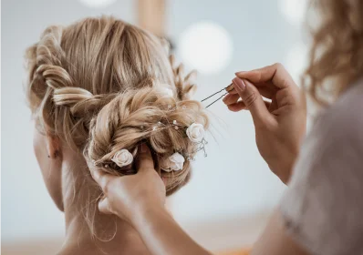 We provide a range of event styling services, including glamorous blowouts, updos, Hollywood waves, braided styles, sleek ponytails, and customized looks for weddings, parties, and special occasions.
